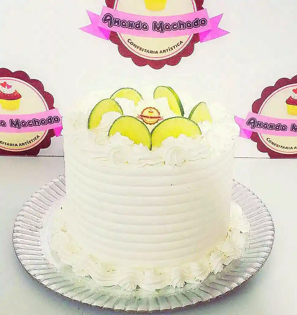 Bolo de baunilha recheio de mousse de limão e trufa de limão. Decoração Tradicional com chantilly e raspas de limão.