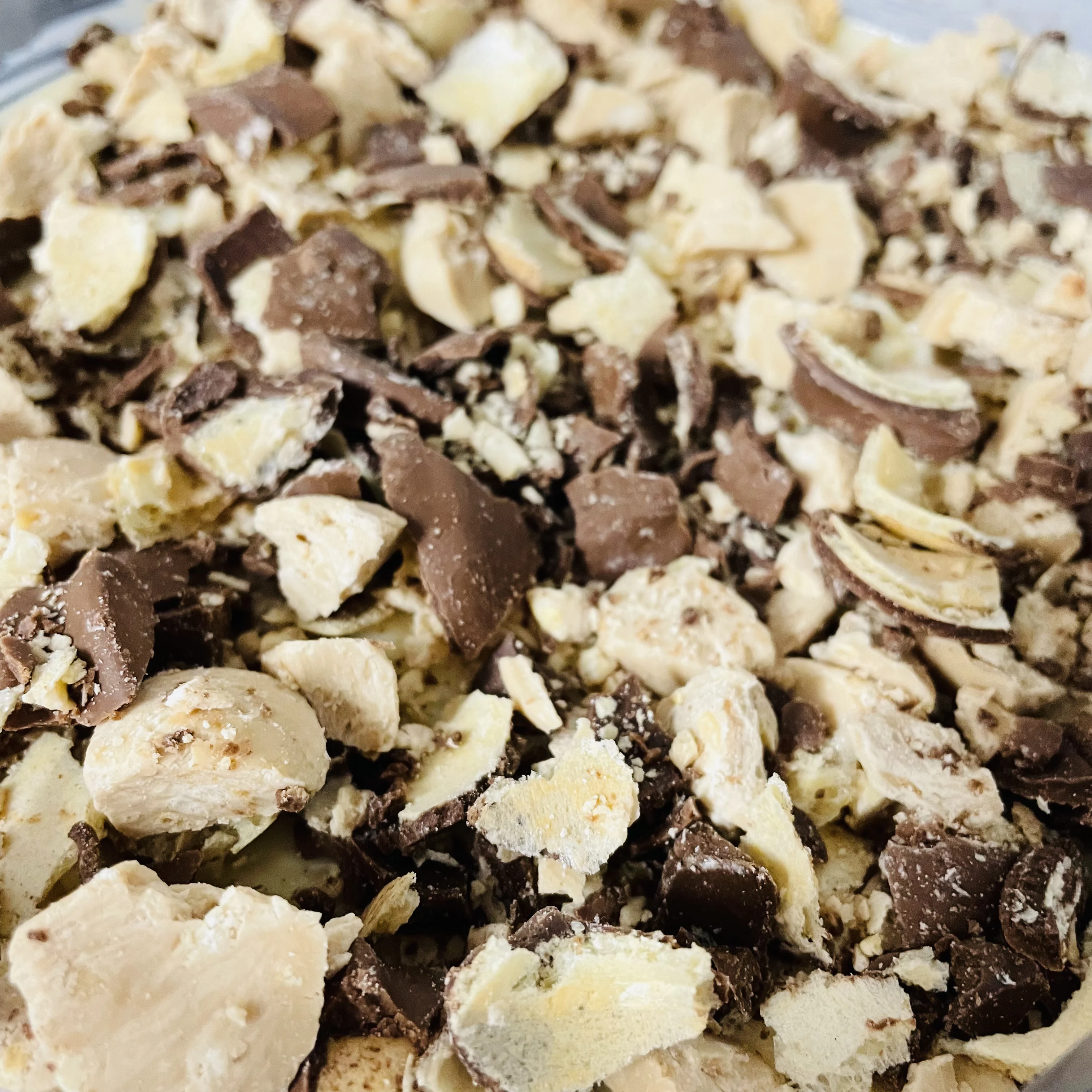 Bolo de chocolate, recheio de brigadeiro. Decoração Tradicional com CHANTILLY DE CHOCOLATE e granulado.