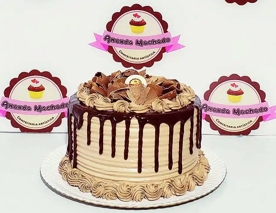 Massa branca, recheio de trufa de chocolate ao leite com Nutella. Decoração Tradicional com chantilly e raspas de chocolate ao leite
