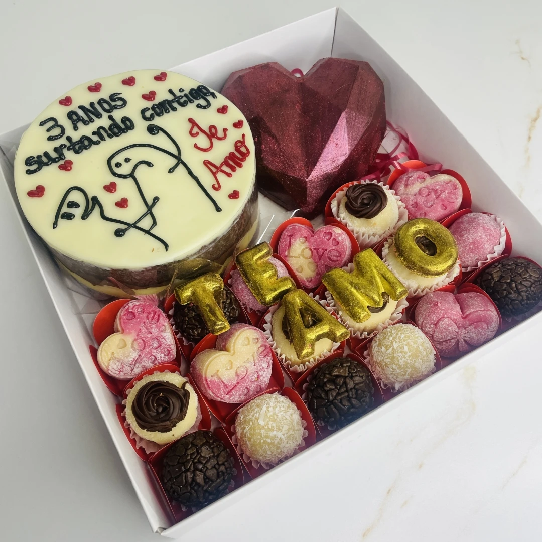 Contem Bento 400gramas (Personalize sua frase como desejar) 18 doces gourmet Brigadeiro Beijinho Ninho com nutella Brigadeiro de Ninho Bicho de pé Coração lapidado trufado 180 gramas