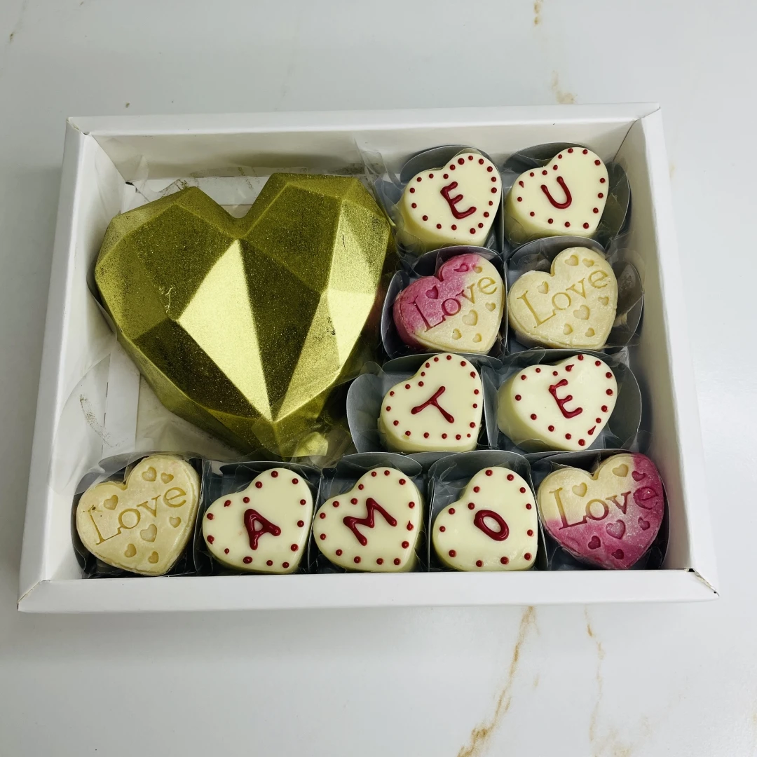 Contem 1 Coração trufado 180 gramas 4 doces de ninho com brigadeiro rosa 7 corações trufados